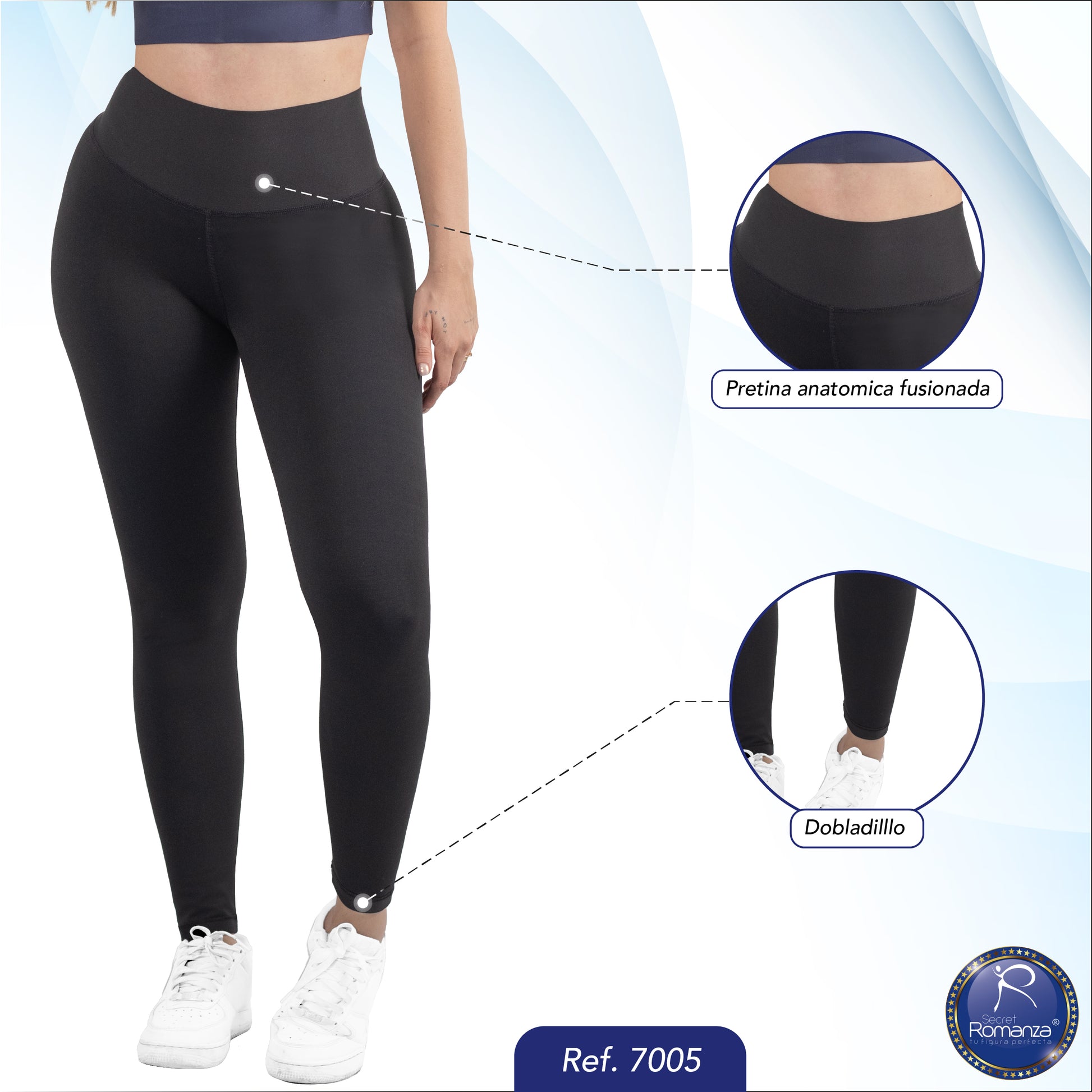 Brinda ajuste perfecto y soporte en la zona abdominal gracias a su pretina anatómica. La cintura alta estiliza la figura y ofrece seguridad al moverse. El dobladillo de 2 cm en la bota garantiza durabilidad y una terminación impecable.