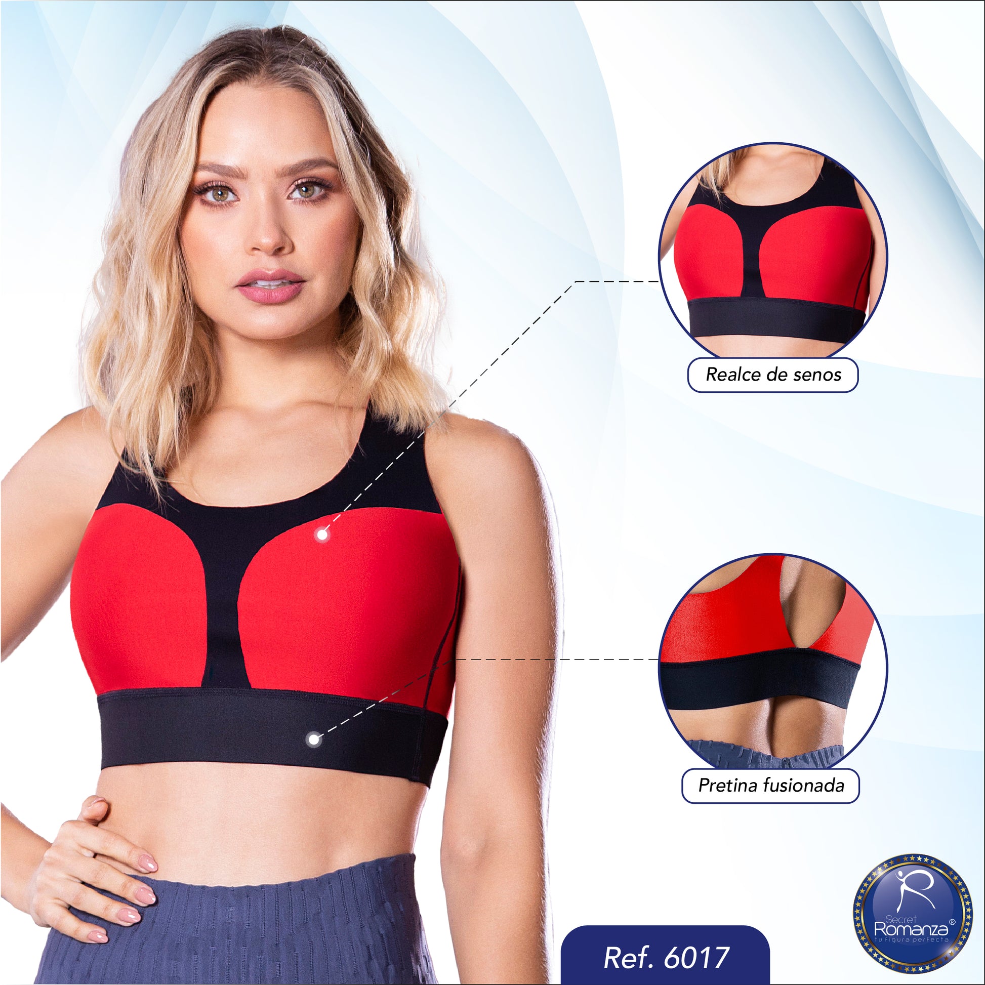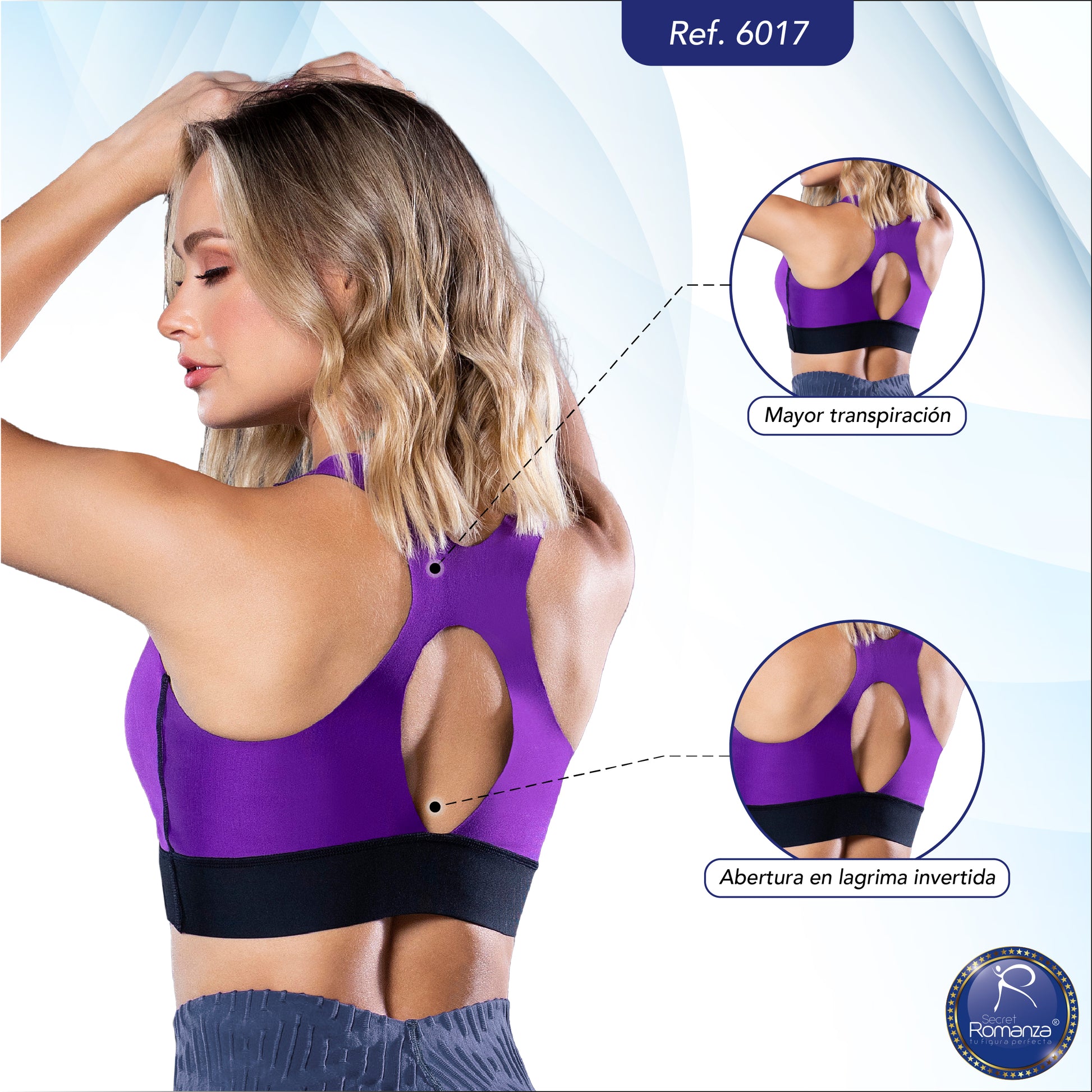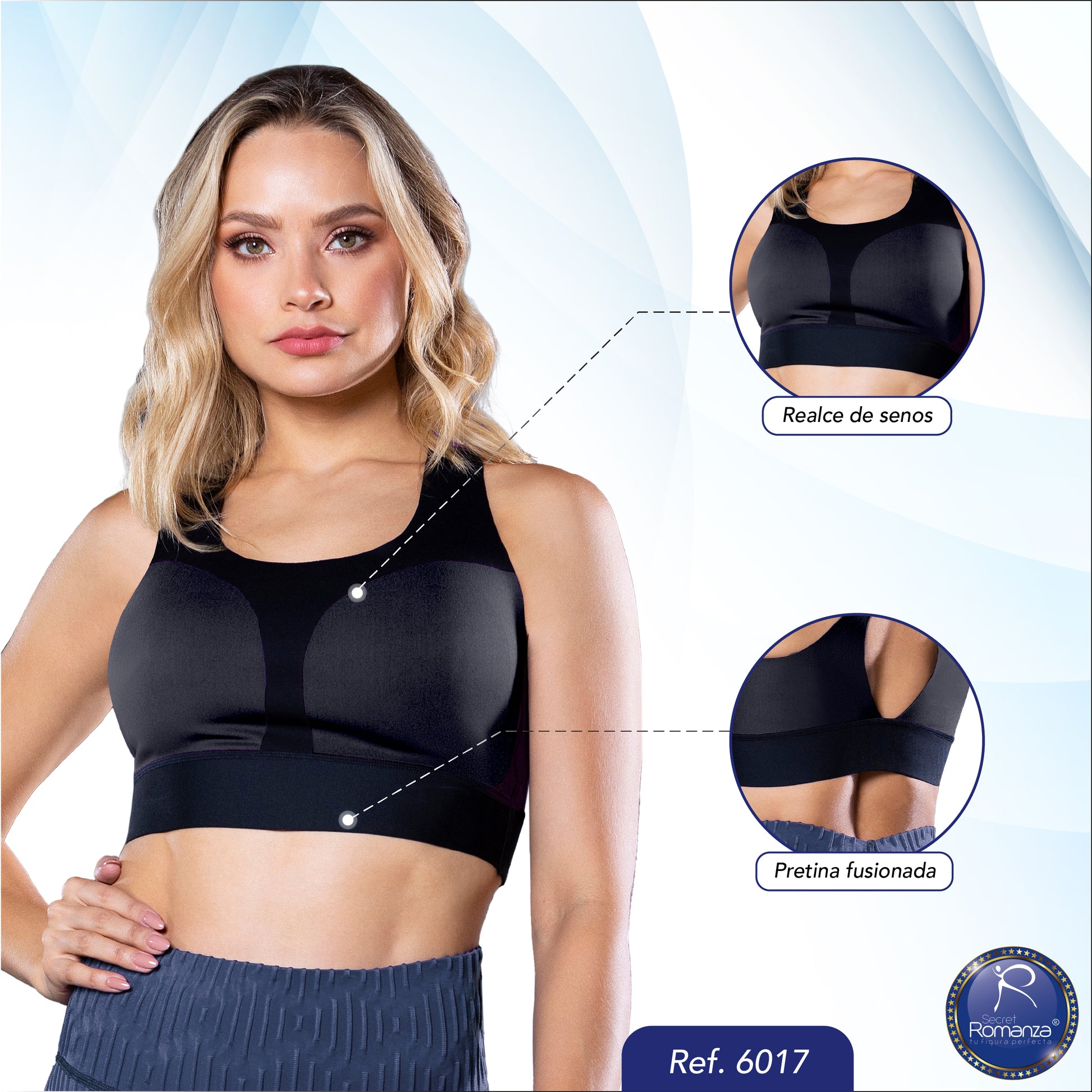 Realza el busto, mejora la postura y ofrece comodidad y frescura durante el movimiento.