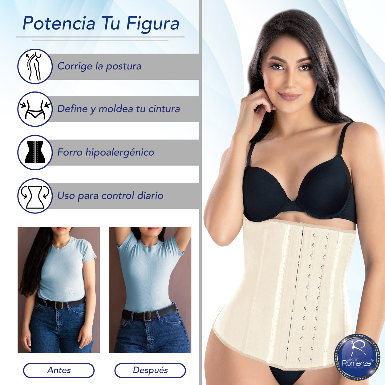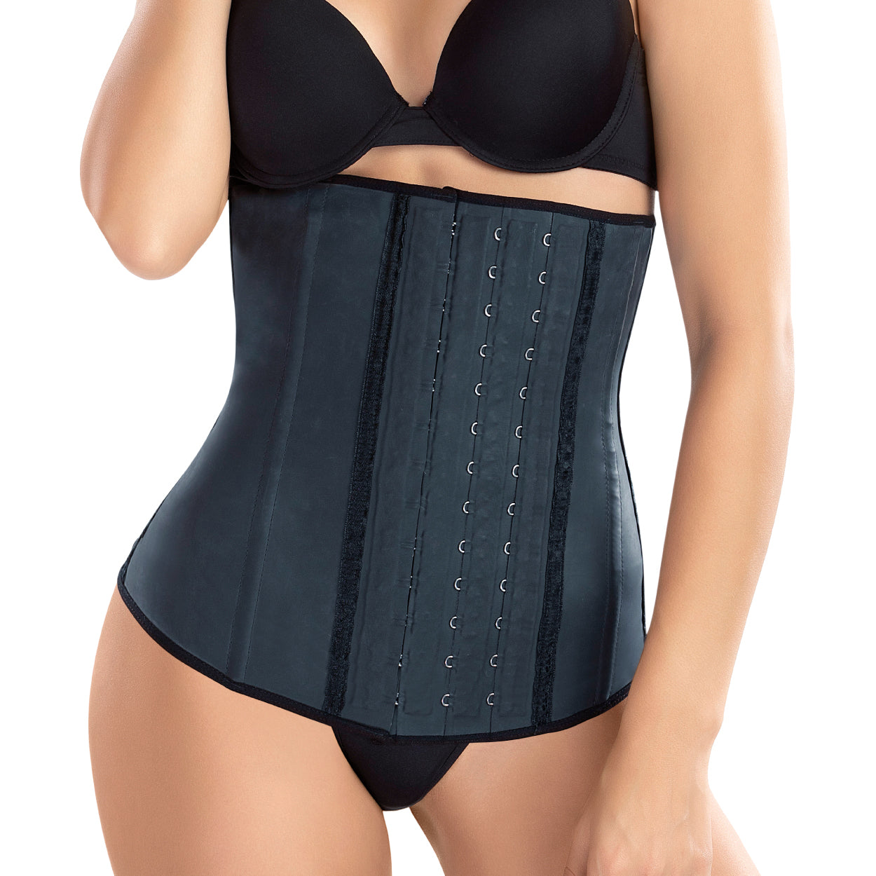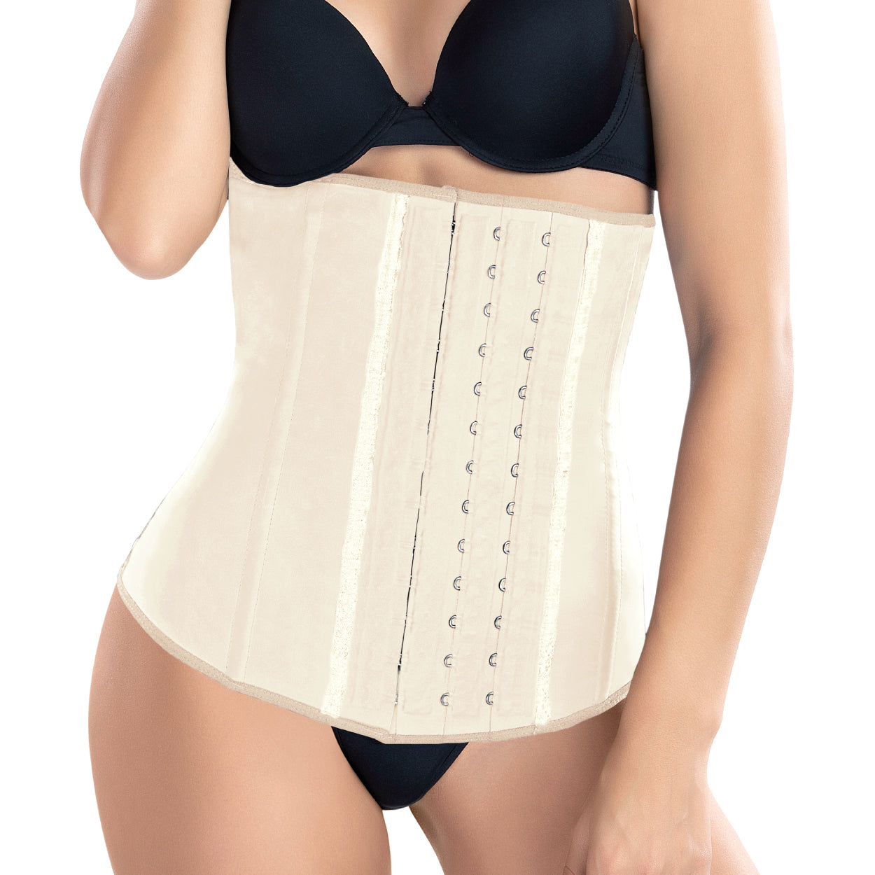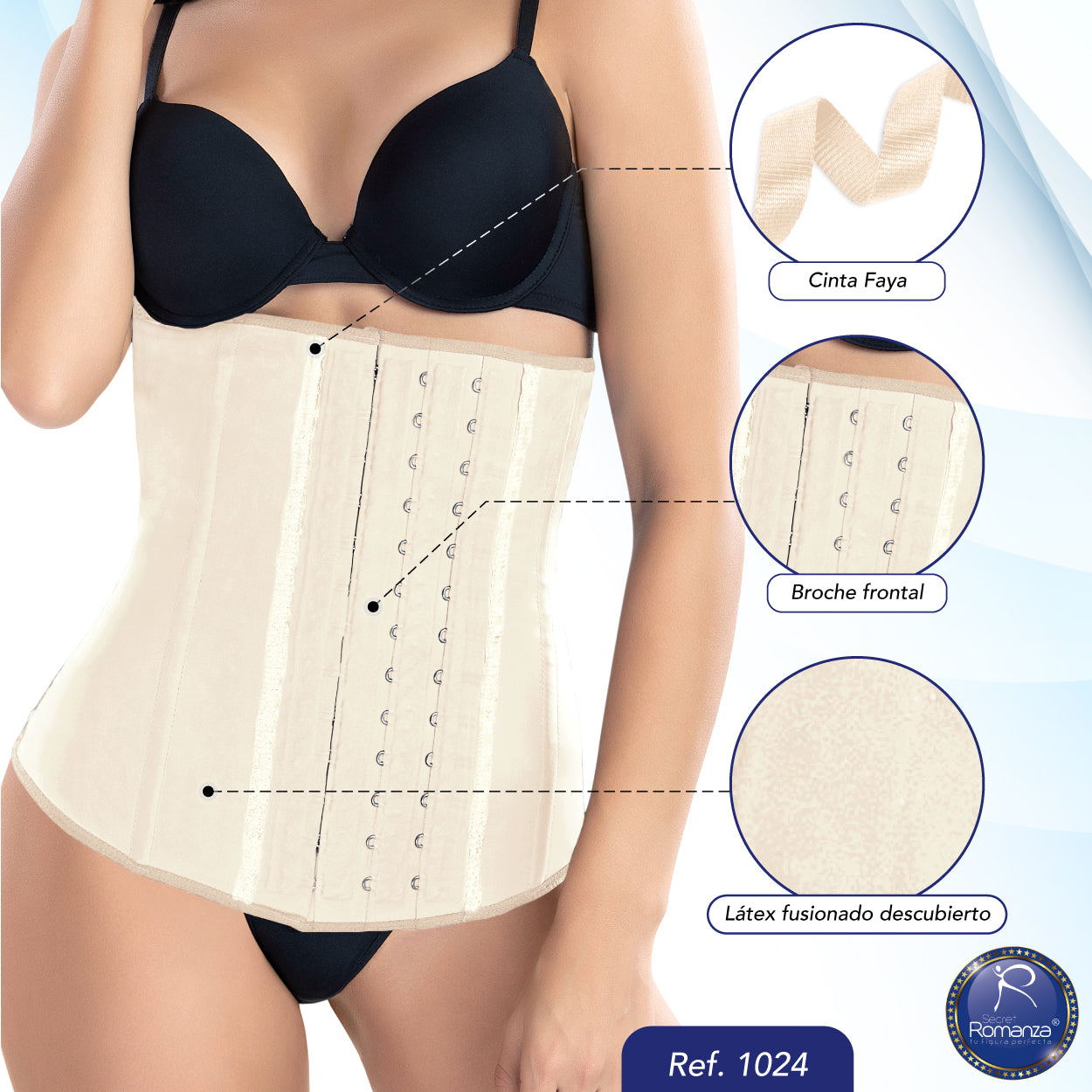 Faja cinturilla, fabricada en látex y algodón expuesto, Cuenta con compresión máxima y una tela interna de elastano, 13 broches de 3 posiciones para mayor ajuste. Tiene varillas internas metálicas.