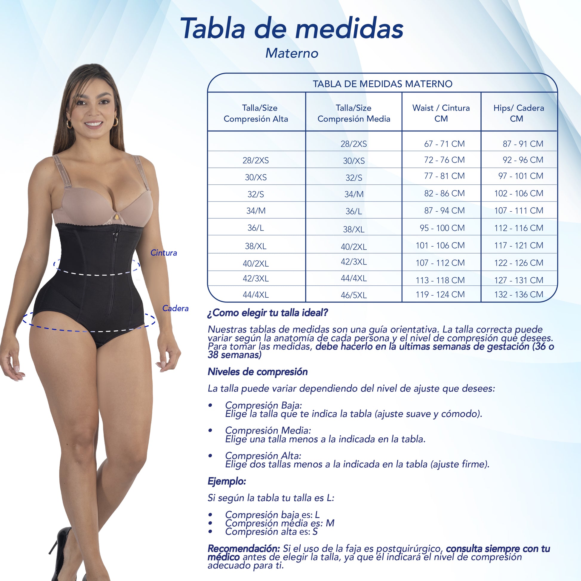 Recomendada para utilizar después del parto con el fin de controlar el abdomen.