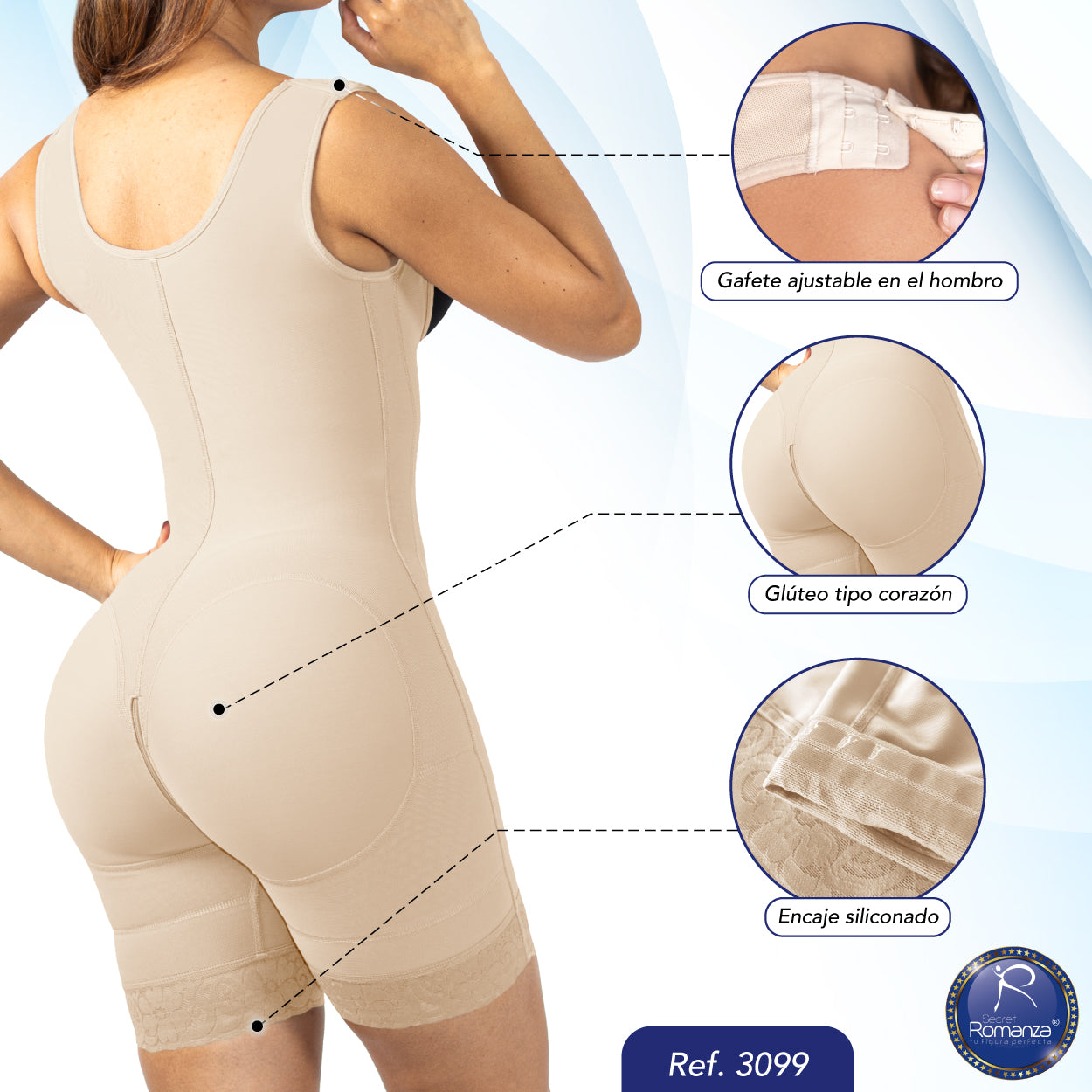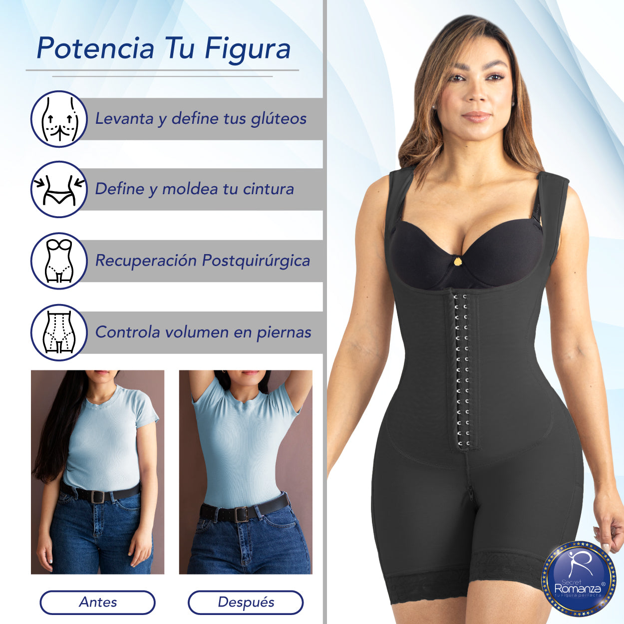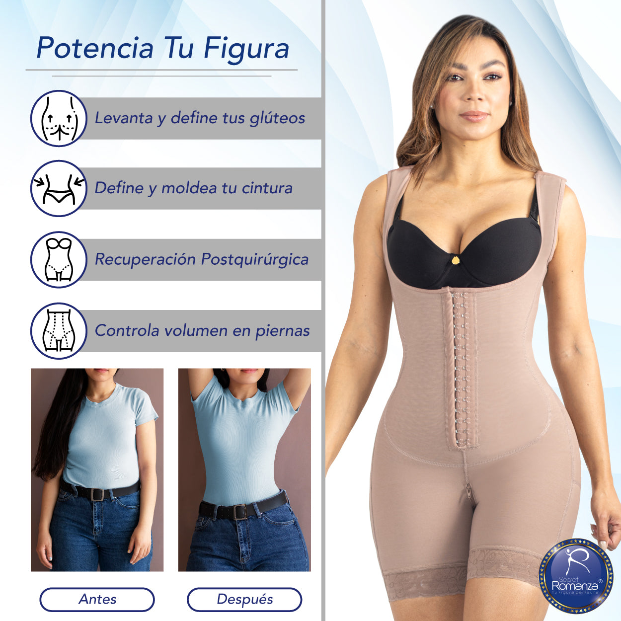 Es de alto control que ayuda a la pronta recuperación del cuerpo después de una cirugía. Moldea la figura y reduce medidas, realza el busto, controla el abdomen y espalda.