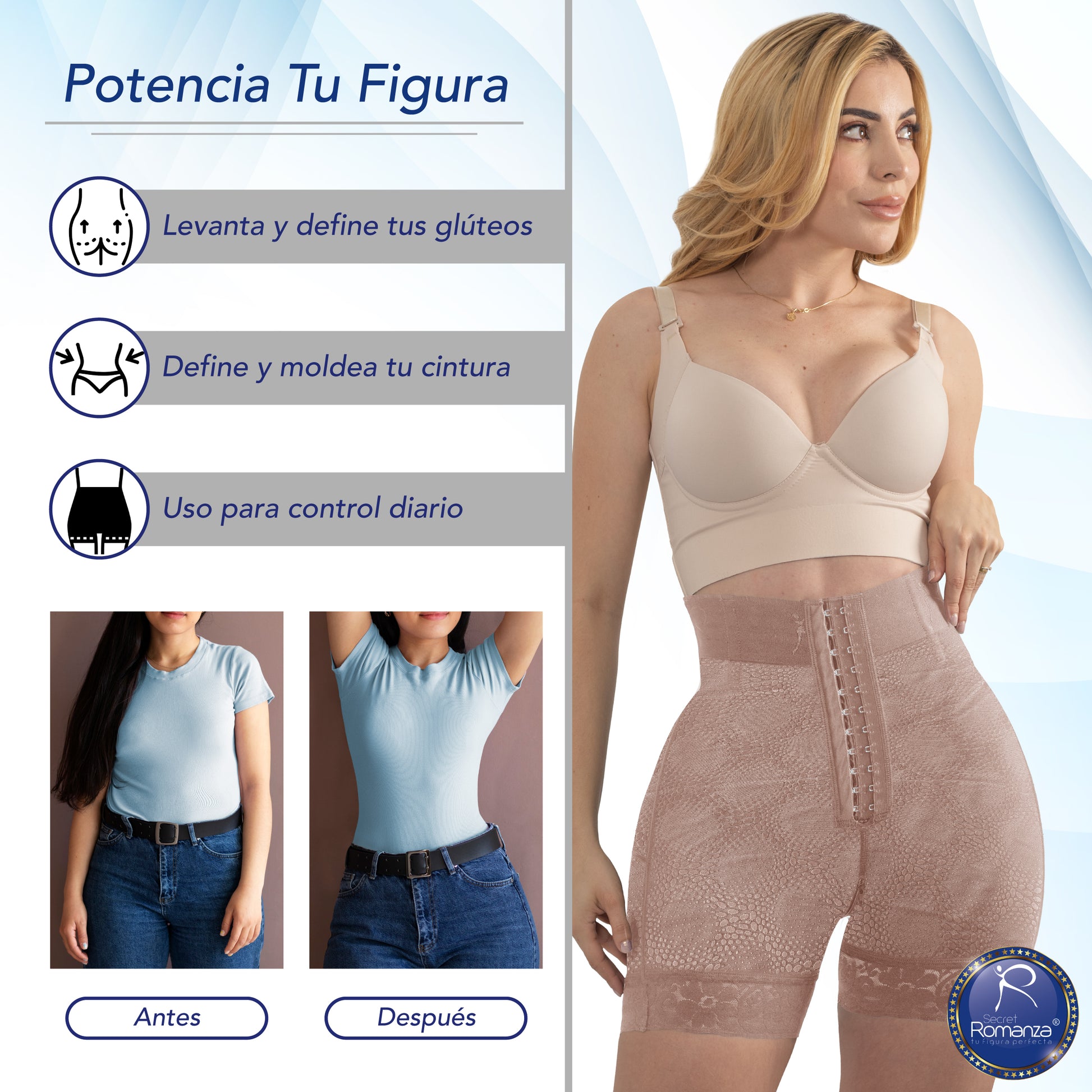 Mejora la recuperación postquirúrgica y contribuye a un ajuste más firme y natural del cuerpo.